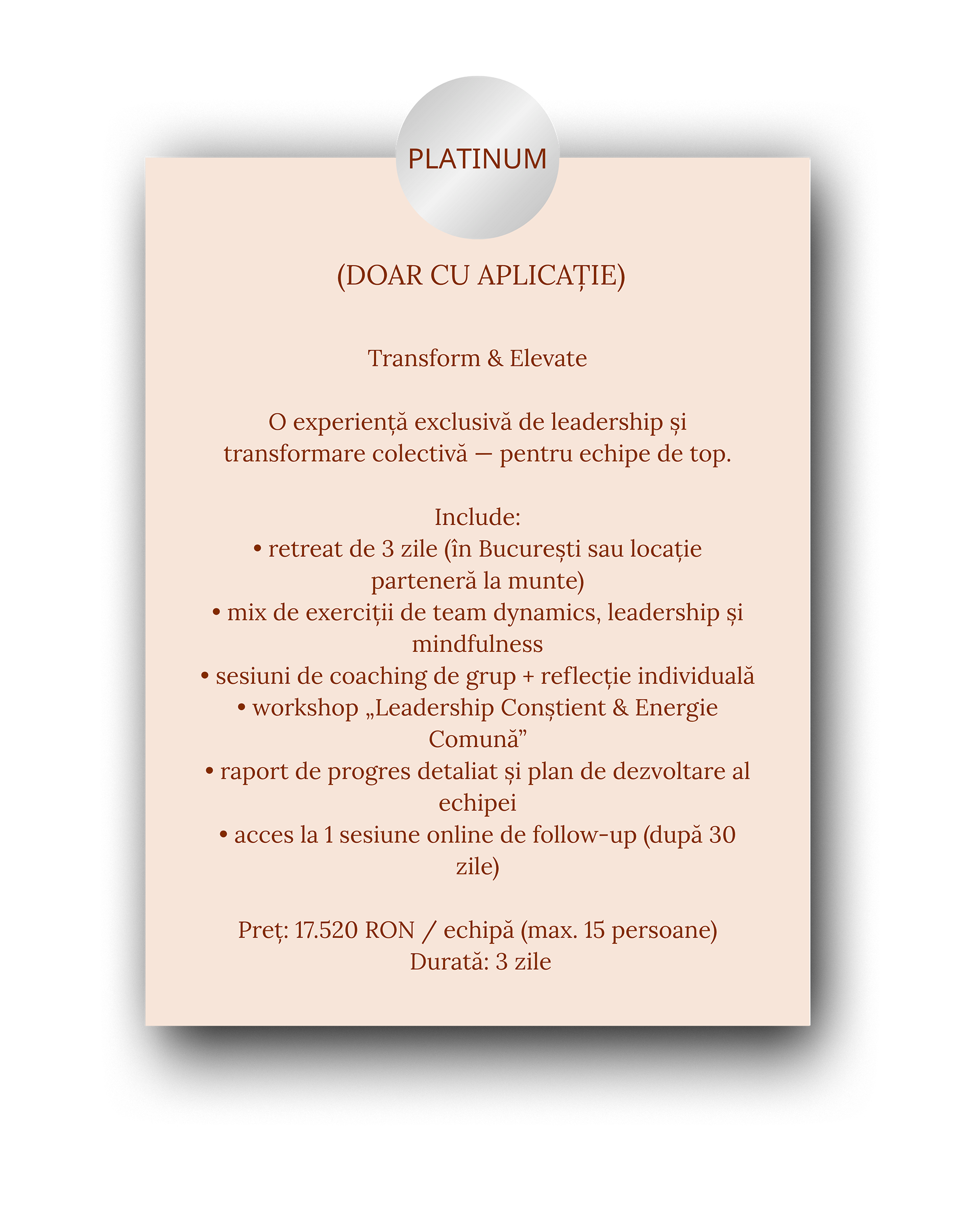 * Programul Platinum este o invitație, nu o ofertă standard.