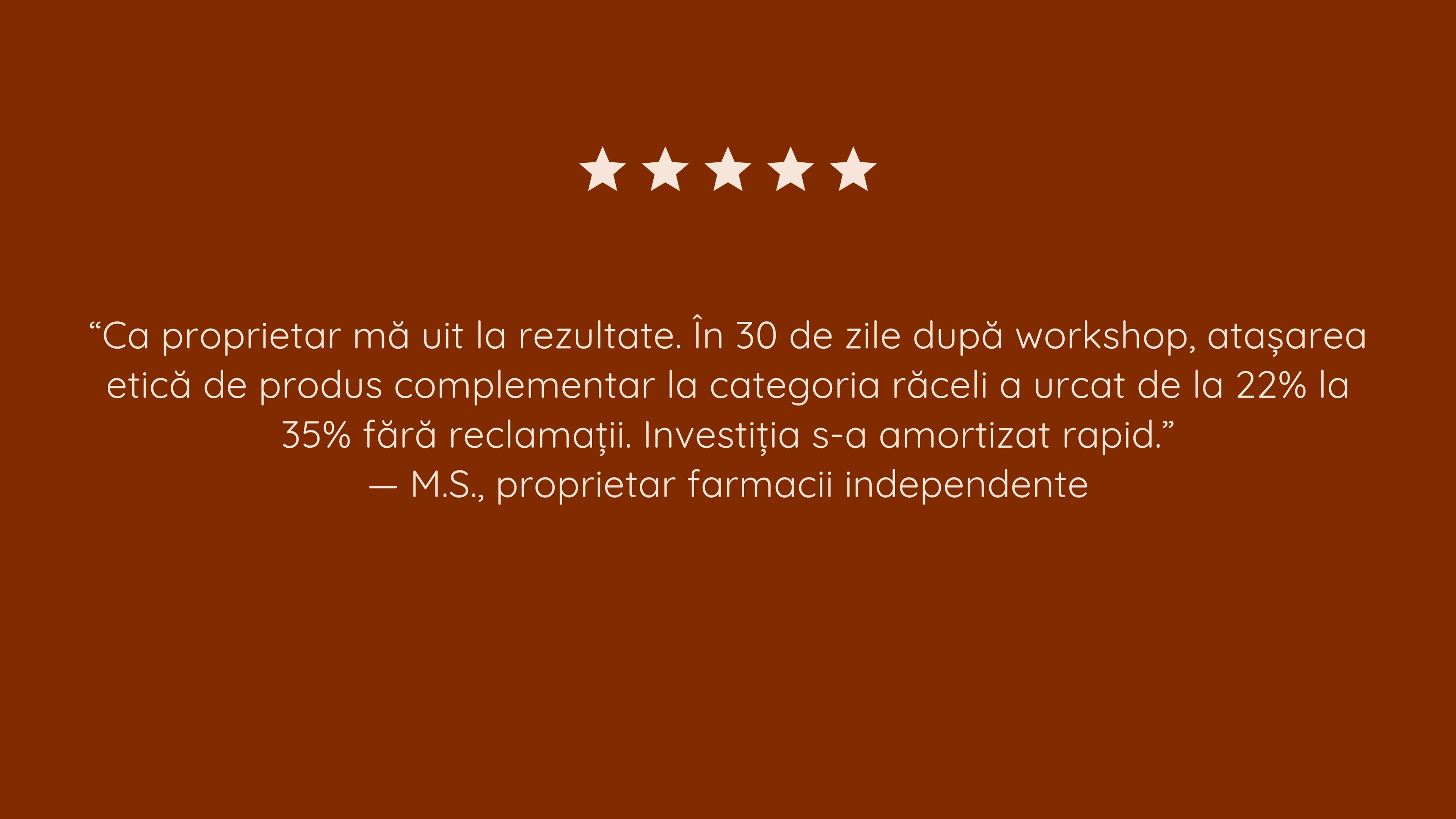 Mulțumim comunității noastre pentru încredere și pentru atenția acordată calității procesului, nu doar etichetei.