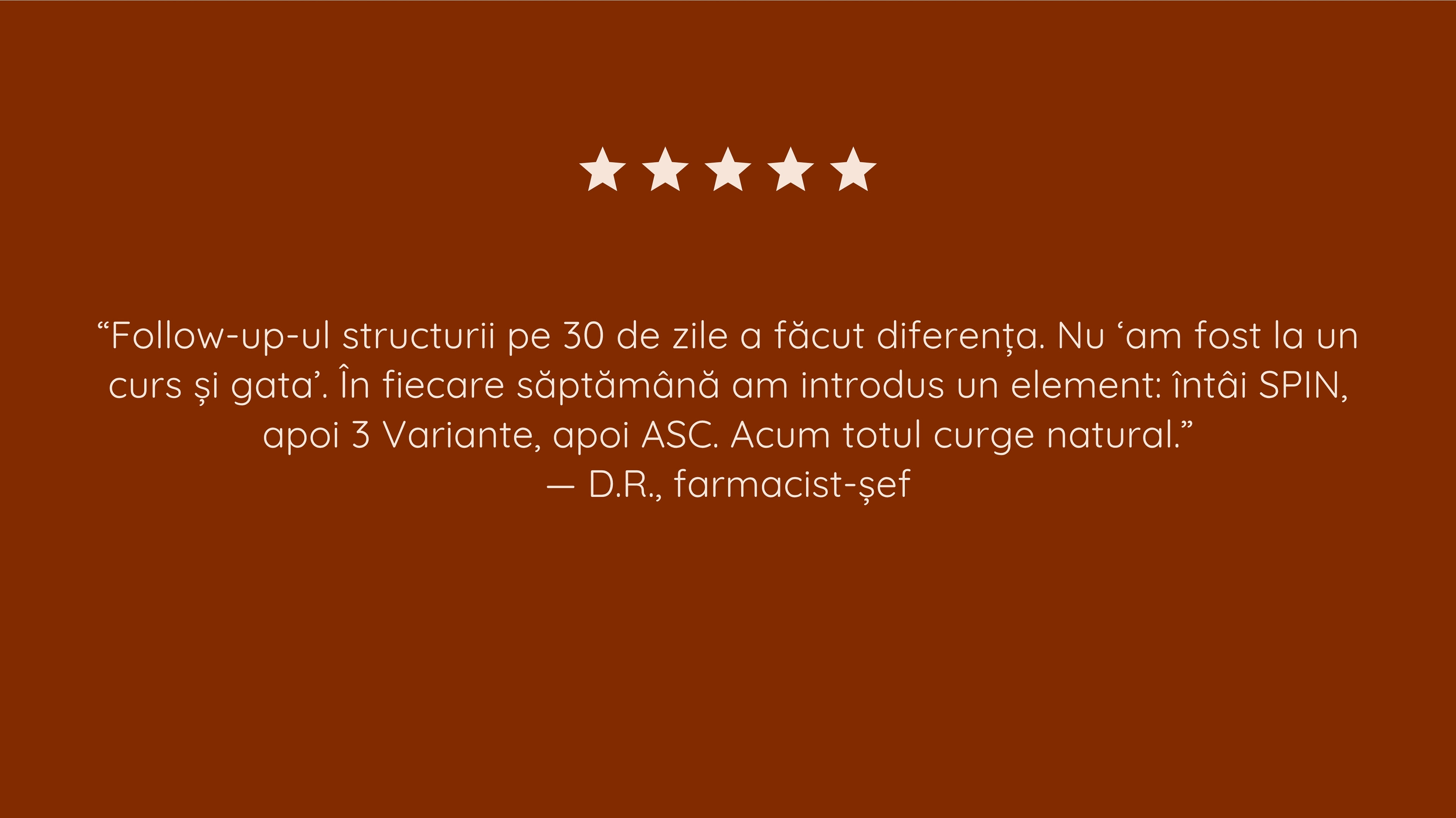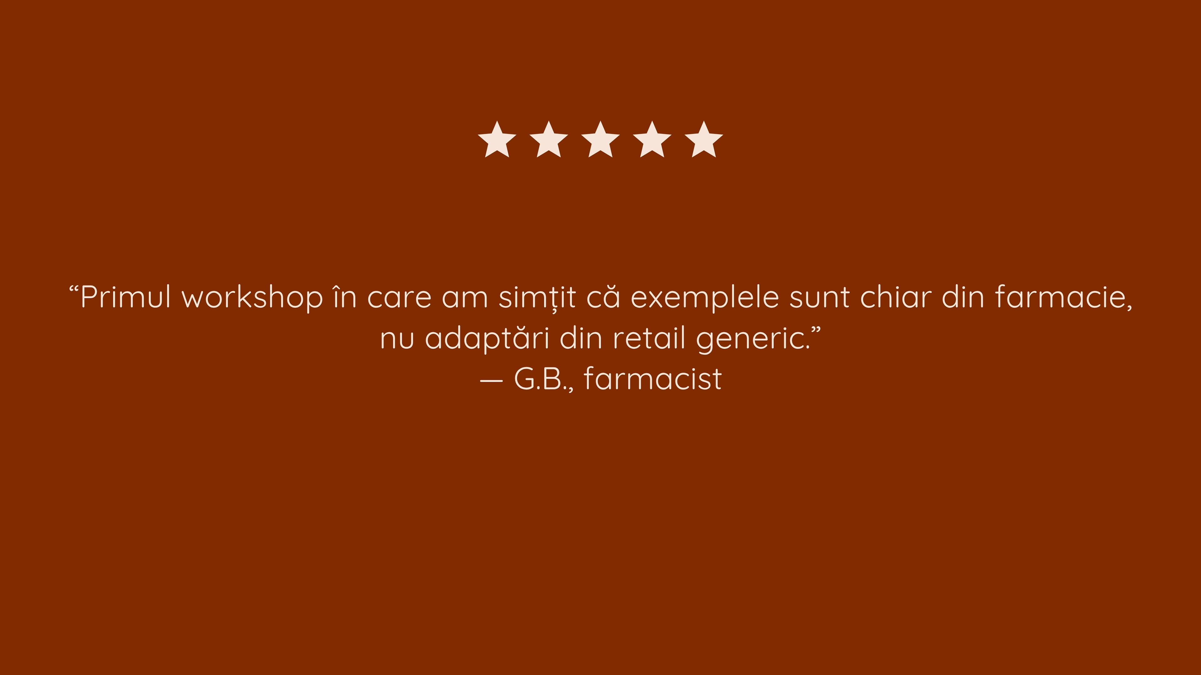 Dacă, după ce le parcurgi, simți că abordarea noastră se aliniază cu ceea ce cauți, îți stăm cu drag la dispoziție pentru o discuție de explorare.
